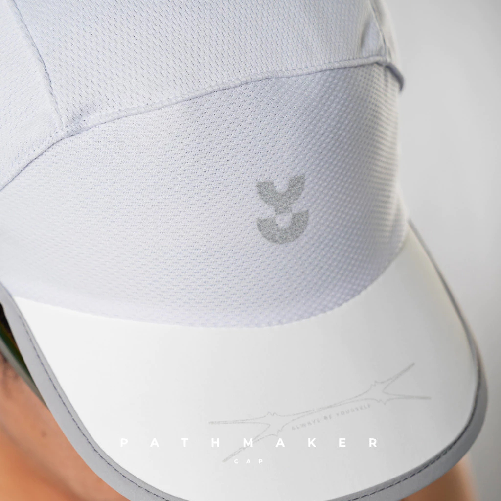 โลโก้สะท้อนแสงบนแผงด้านหน้าและปีกหมวก เพิ่มความปลอดภัยและการมองเห็นในเส้นทางที่มีแสงน้อยหรือการวิ่งกลางคืน